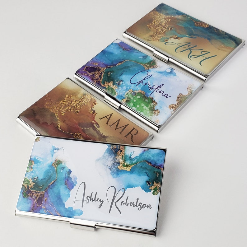4.6 out of 5 stars. Get it as soon as thu, feb 4. Collection page for business card holders and cases is loaded. 15% off with code thursdayzazz. White marble personalized card holder.